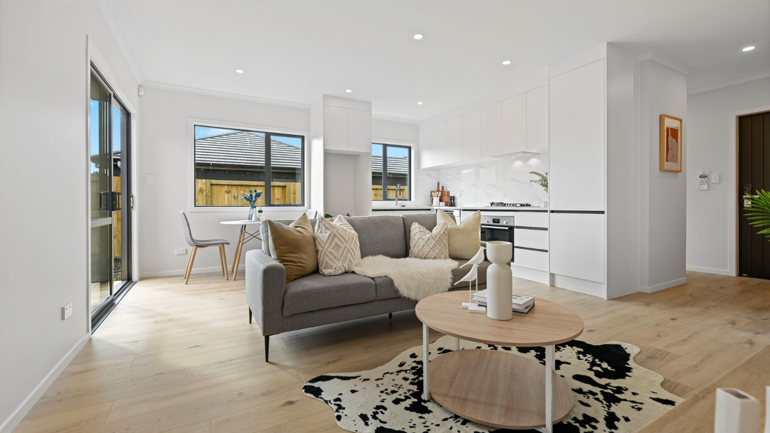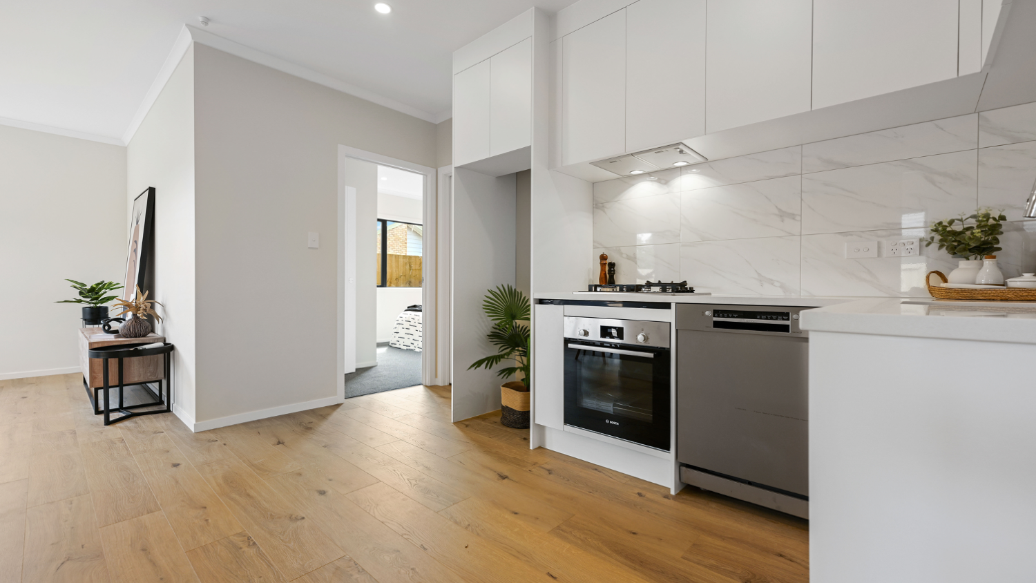 An urban sophisticate, the smart layout invites you into a world of modern living where a crafted open plan area offers everyday relaxation. Set under an elevated 2.55-metre stud, generous double-glazing floods the interior with natural light. The kitchen boasts Bosch appliances including a gas cooktop and the sleek good looks and practicality of engineered stone tops. The master bedroom offers an ensuite bathroom and walk-through robe, and both remaining bedrooms are fitted with built in wardrobe organisers. Fully tiled showers and chrome fittings bring style and luxury to both the ensuite and main bathroom, which both have the works. It's evident that this townhouse has been a carefully considered build, it places an emphasis on sunny indoor-outdoor living and is ideal for a lock up and leave lifestylers.